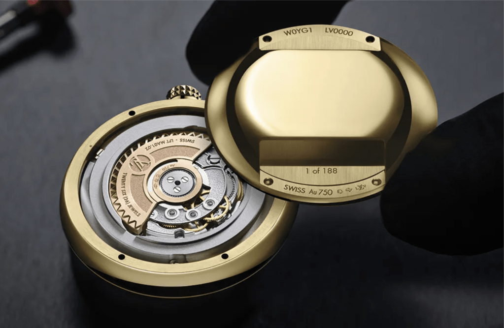 Além do seu design atualizado, o Monterey é equipado com o Calibre automático LFTMA01.02, produzido na La Fabrique du Temps, sua platina principal com granulação circular, pontes jateadas e bordas microjateadas evidenciam atenção aos detalhes. Um rotor de corda em ouro rosa 18 quilates oferece 45 horas de reserva de marca e uma frequência de batimento de 28.800 vibrações por hora, finalizado com uma pulseira em couro de bezerro preto com fivela em ouro amarelo 18 quilates.